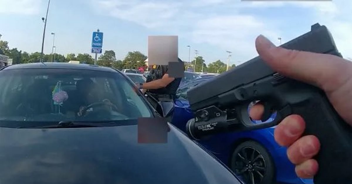 உடலில் கேமரா அணிந்திருக்கும் இரண்டாவது அதிகாரி, காருக்கு முன்பு துப்பாக்கியுடன் நெருங்கி வந்து, "நீங்கள் கடையிலிருந்து திருடிவிட்டீர்கள், எனவே, காரிலிருந்து இறங்குங்கள்" என்று கூறுகிறார். ஆனால், தாகியா யங், ``நான் எதையும் திருடவில்லை" என்று காரிலிருந்தவாறே வாதிடுகிறார். இரண்டு காவல்துறை அதிகாரிகளும், ``மது பாட்டில்களை ஒரு பெண் திருடிவிட்டதாகவும், கடைக்கு வெளியே நிறுத்தப்பட்டிருந்த காரில் அவை இருப்பதாகவும் மளிகைக் கடை ஊழியர் புகார் அளித்திருக்கிறார்" என்கிறனர்.
