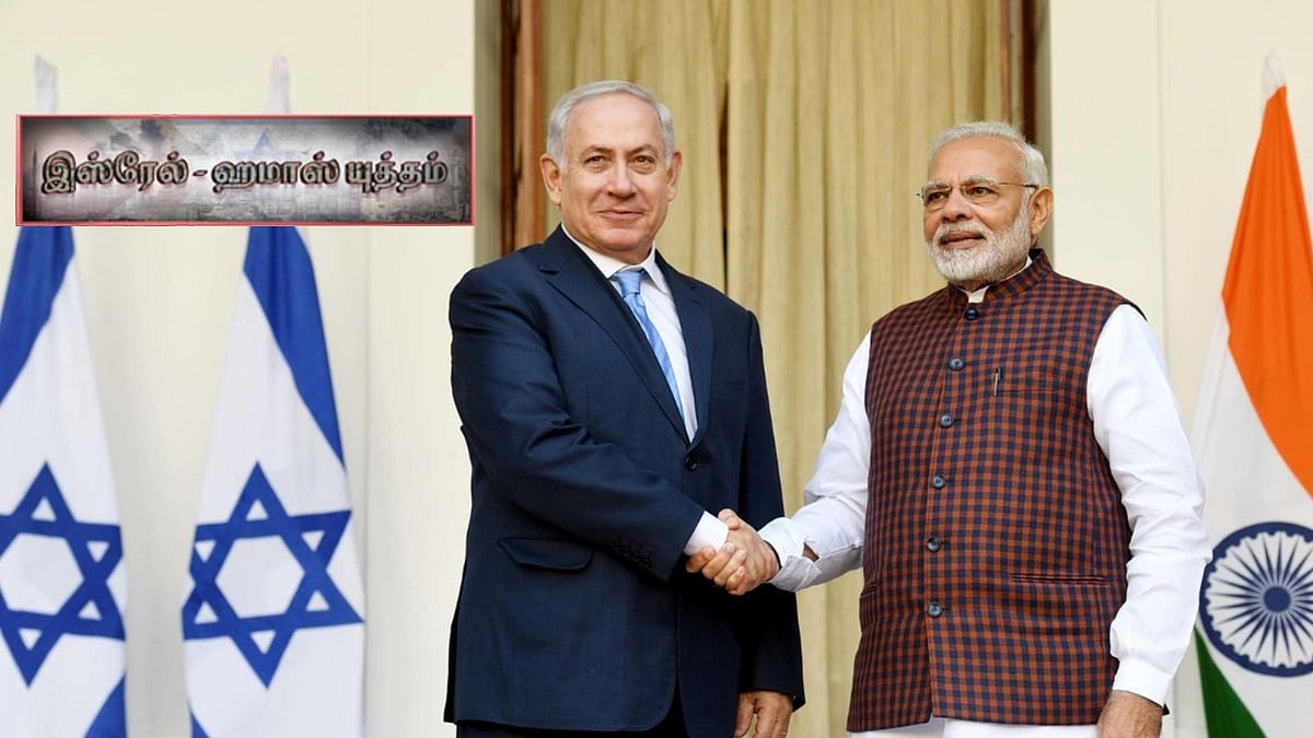 இஸ்ரேலில் பொதுமக்கள் மீது ஹமாஸ் பயங்கரவாதிகள் தாக்குதல் நடத்திய சில மணி நேரங்களில், இஸ்ரேல் பிரதமர் பெஞ்சமின் நெதன்யாஹுவுடன் பேசினார், நம் பிரதமர் நரேந்திர மோடி. இந்தத் தாக்குதலுக்கு அதிர்ச்சி தெரிவித்த மோடி, ‘‘இக்கட்டான இந்தத் தருணத்தில் இஸ்ரேல் மக்களுக்காக இந்திய மக்கள் துணை நிற்கிறார்கள்’’ என்று சொன்னார். ஹமாஸ் தாக்குதலுக்கு கண்டனமும் தெரிவித்தார்.இஸ்ரேல் பிரதமர் பெஞ்சமின் நெதன்யாஹுவுடன் பிரதமர் நரேந்திர மோடி.