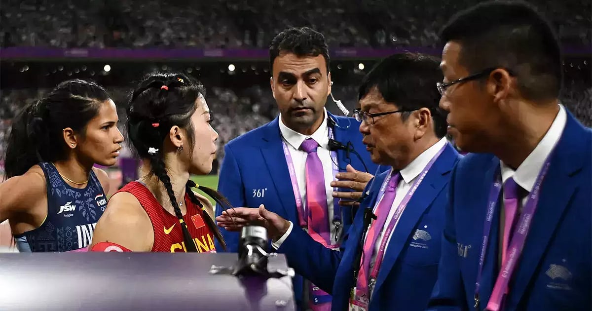 Reprimanding Jyothi Yarraji for home favourite pic.twitter.com/OrRxx7tBM3— IndiaSportsHub (@IndiaSportsHub) October 1, 2023